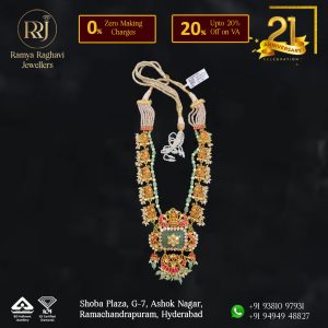 Gold harams add a classic and sophisticated touch to any attire, since they remain an essential cultural tradition. Whether for brides, festive occasions, or everyday grace, a stunning haram elevates your look effortlessly. Our jewellery creations at Ramya Raghavi Jewellers in Hyderabad earned fame for our specialized antique gold haram designs and traditional South Indian […]