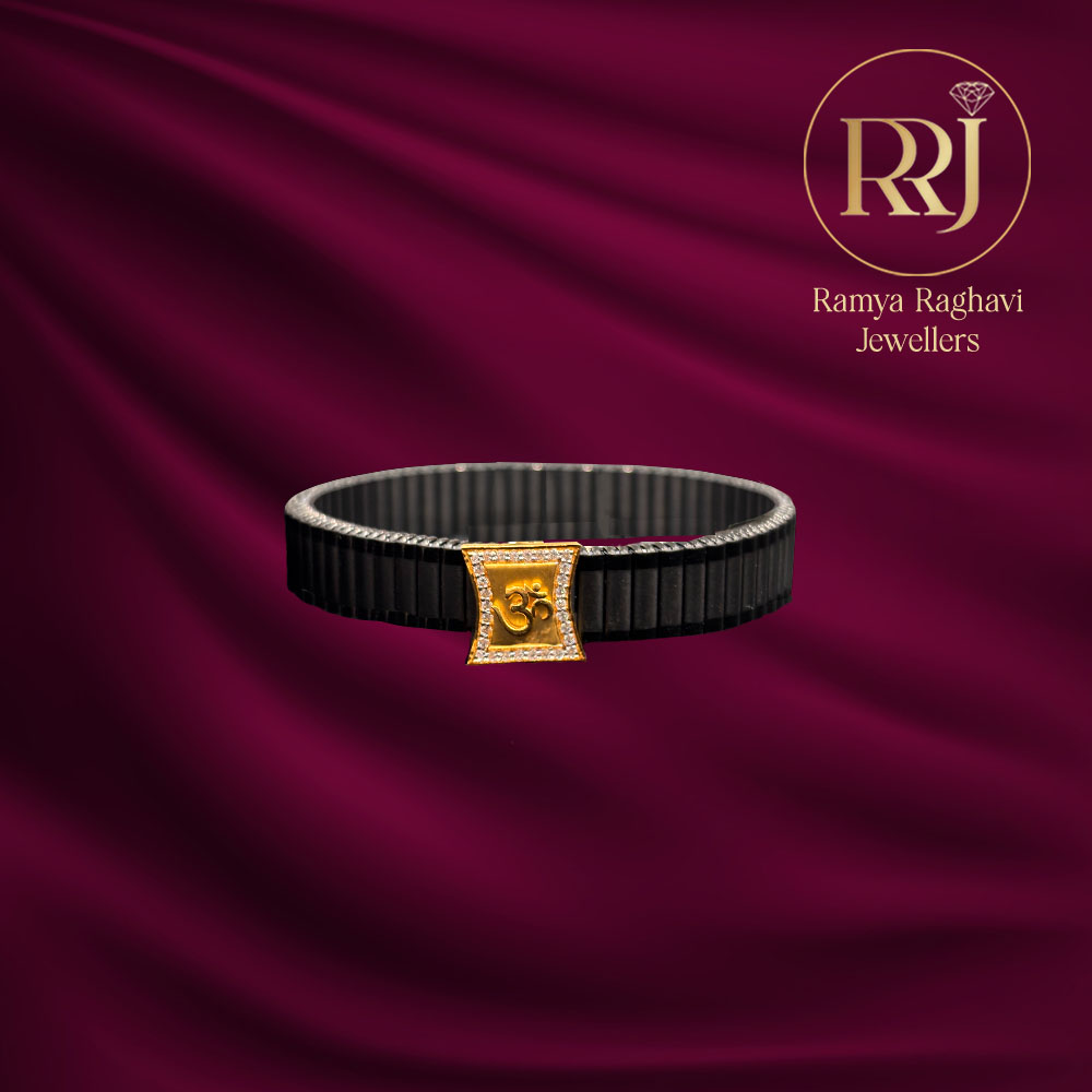 This stylish Modern Om Gold Bracelet with Leather Strap blends spiritual symbolism with a contemporary design. Featuring a polished gold Om symbol embellished with sparkling polki diamonds on a sleek black leather strap, it’s a perfect everyday accessory for a minimalist yet meaningful statement.
